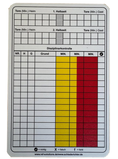 - Platz für 48 Tore und 15 Personalstrafen (richtig/falsch/fehlend)