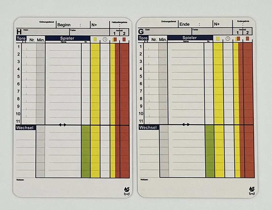 - Feld für Dokumentation von Beginn, Ende, Nachspielzeiten, Halbzeitergebis, Endergebnis, Ordnungsdienst.