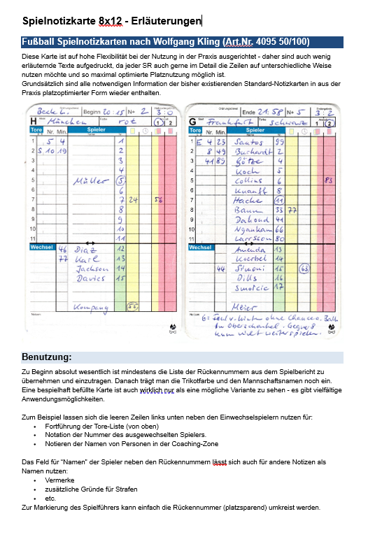 Cartes de notes de match de football selon Wolfgang Kling